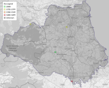 This map shows all records of - Bucculatrix cidarella in the Durham (VC66) database per monad (1km grid square). The map can be explored further by zooming and panning, can be reset using the button on the left, and can be filtered by selecting the era. Click on a monad to view a full list of species recorded in it, or its containing hexad (10km grid square).