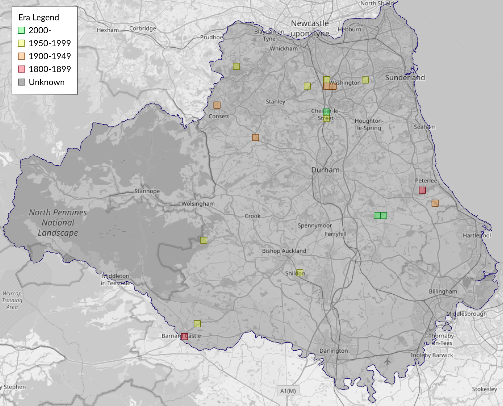 This map shows all records of - Diurnea lipsiella in the Durham (VC66) database per monad (1km grid square). The map can be explored further by zooming and panning, can be reset using the button on the left, and can be filtered by selecting the era. Click on a monad to view a full list of species recorded in it, or its containing hexad (10km grid square).