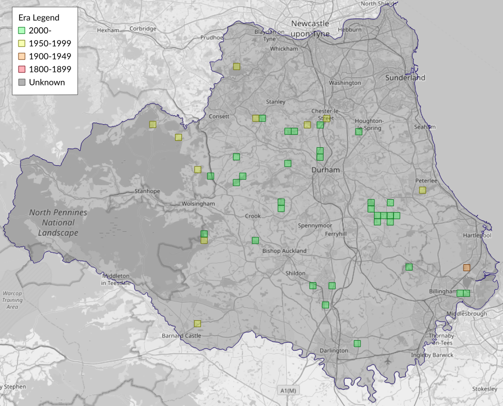 This map shows all records of Coleophora alticolella/glaucicolella agg. - Coleophora alticolella/glaucicolella in the Durham (VC66) database per monad (1km grid square). The map can be explored further by zooming and panning, can be reset using the button on the left, and can be filtered by selecting the era. Click on a monad to view a full list of species recorded in it, or its containing hexad (10km grid square).