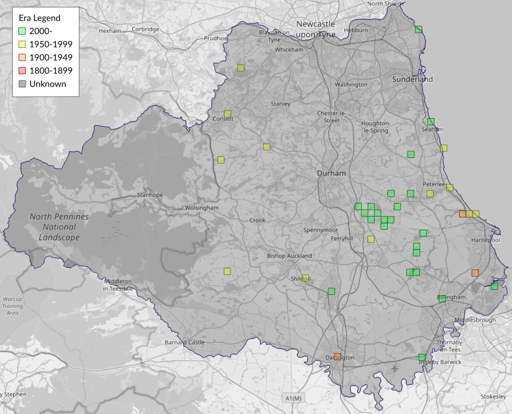 This map shows all records of - Coleophora discordella in the Durham (VC66) database per monad (1km grid square). The map can be explored further by zooming and panning, can be reset using the button on the left, and can be filtered by selecting the era. Click on a monad to view a full list of species recorded in it, or its containing hexad (10km grid square).