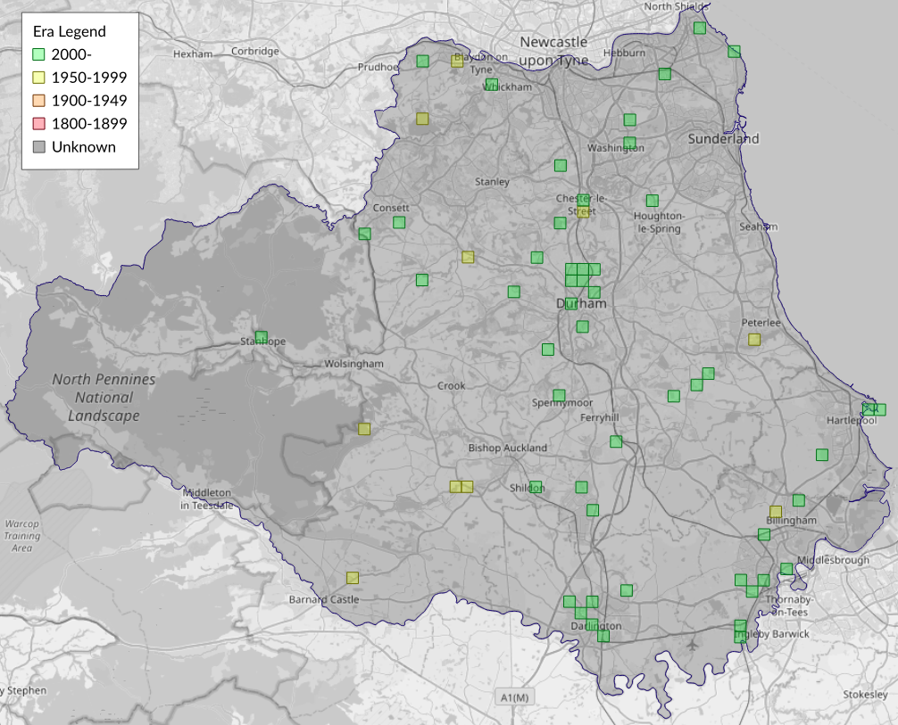 This map shows all records of - Bryotropha affinis in the Durham (VC66) database per monad (1km grid square). The map can be explored further by zooming and panning, can be reset using the button on the left, and can be filtered by selecting the era. Click on a monad to view a full list of species recorded in it, or its containing hexad (10km grid square).