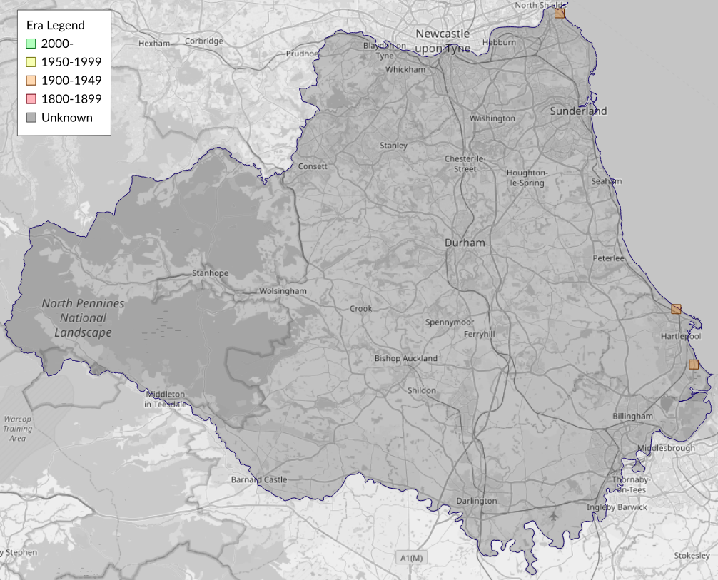 This map shows all records of - Bryotropha desertella in the Durham (VC66) database per monad (1km grid square). The map can be explored further by zooming and panning, can be reset using the button on the left, and can be filtered by selecting the era. Click on a monad to view a full list of species recorded in it, or its containing hexad (10km grid square).