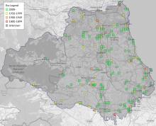 This map shows all records of Magpie Moth - Abraxas grossulariata in the Durham (VC66) database per monad (1km grid square). The map can be explored further by zooming and panning, can be reset using the button on the left, and can be filtered by selecting the era. Click on a monad to view a full list of species recorded in it, or its containing hexad (10km grid square).