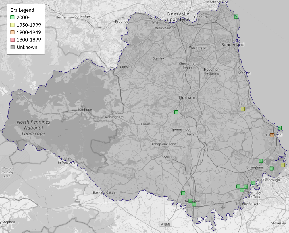 This map shows all records of Plain Pug - Eupithecia simpliciata in the Durham (VC66) database per monad (1km grid square). The map can be explored further by zooming and panning, can be reset using the button on the left, and can be filtered by selecting the era. Click on a monad to view a full list of species recorded in it, or its containing hexad (10km grid square).
