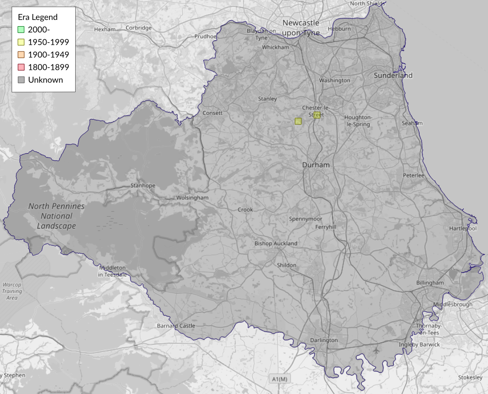 This map shows all records of - Phyllonorycter anderidae in the Durham (VC66) database per monad (1km grid square). The map can be explored further by zooming and panning, can be reset using the button on the left, and can be filtered by selecting the era. Click on a monad to view a full list of species recorded in it, or its containing hexad (10km grid square).