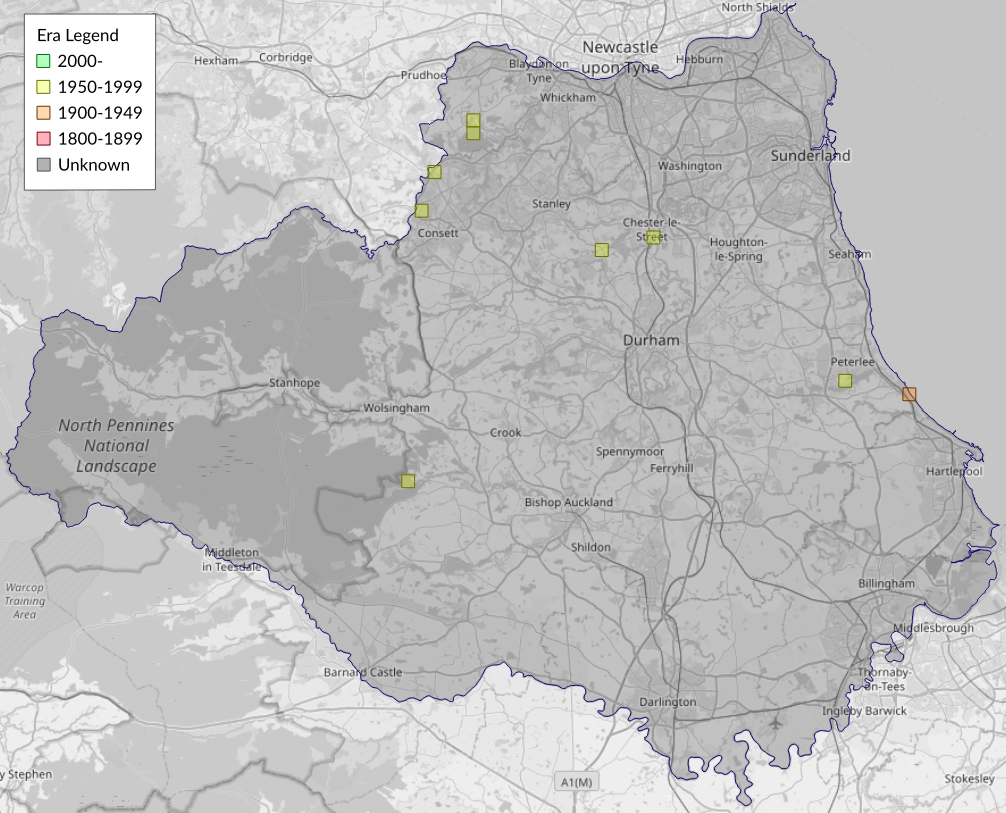 This map shows all records of - Phyllonorycter salicicolella in the Durham (VC66) database per monad (1km grid square). The map can be explored further by zooming and panning, can be reset using the button on the left, and can be filtered by selecting the era. Click on a monad to view a full list of species recorded in it, or its containing hexad (10km grid square).