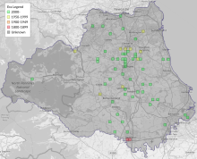 This map shows all records of - Stigmella hybnerella in the Durham (VC66) database per monad (1km grid square). The map can be explored further by zooming and panning, can be reset using the button on the left, and can be filtered by selecting the era. Click on a monad to view a full list of species recorded in it, or its containing hexad (10km grid square).