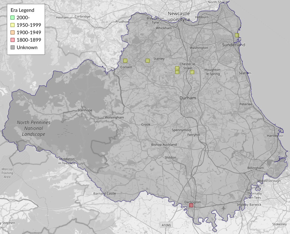 This map shows all records of Apple Pygmy - Stigmella malella in the Durham (VC66) database per monad (1km grid square). The map can be explored further by zooming and panning, can be reset using the button on the left, and can be filtered by selecting the era. Click on a monad to view a full list of species recorded in it, or its containing hexad (10km grid square).