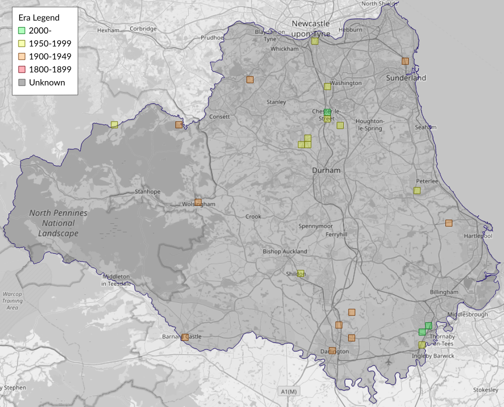 This map shows all records of Golden Plusia - Polychrysia moneta in the Durham (VC66) database per monad (1km grid square). The map can be explored further by zooming and panning, can be reset using the button on the left, and can be filtered by selecting the era. Click on a monad to view a full list of species recorded in it, or its containing hexad (10km grid square).