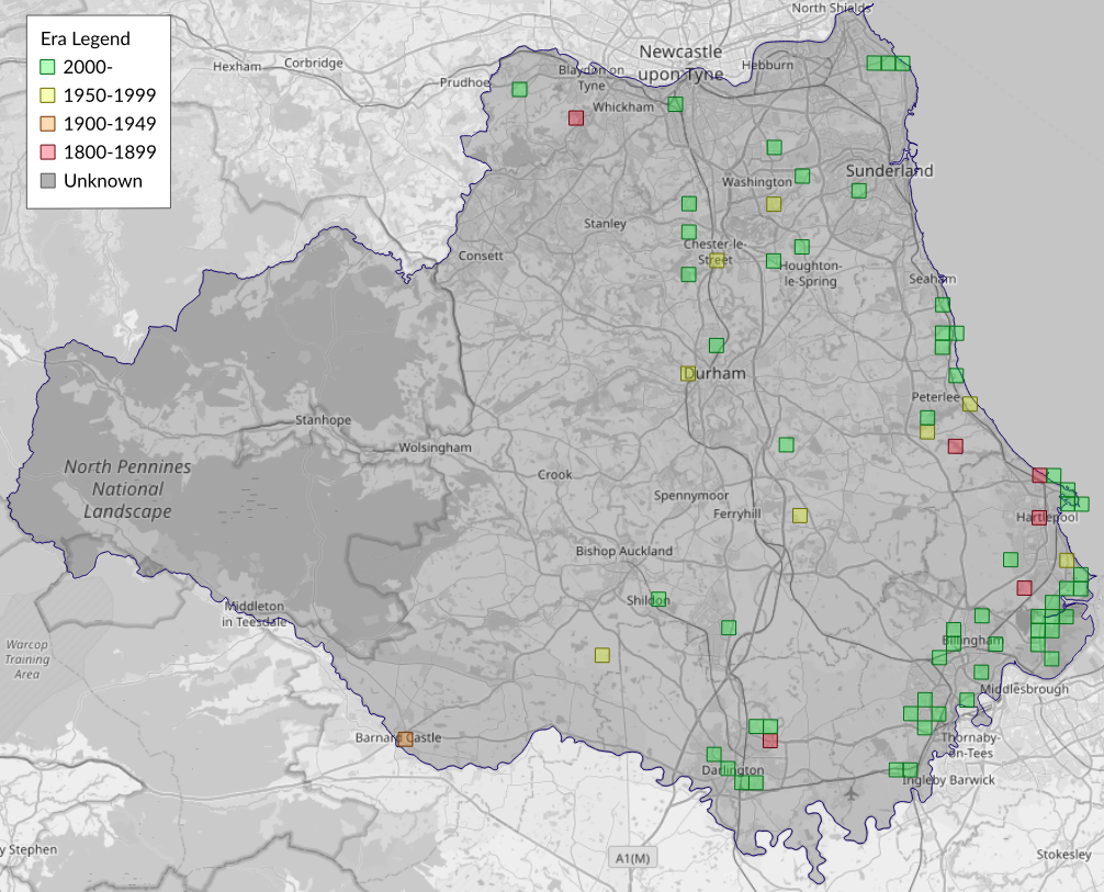 This map shows all records of Straw Underwing - Thalpophila matura in the Durham (VC66) database per monad (1km grid square). The map can be explored further by zooming and panning, can be reset using the button on the left, and can be filtered by selecting the era. Click on a monad to view a full list of species recorded in it, or its containing hexad (10km grid square).