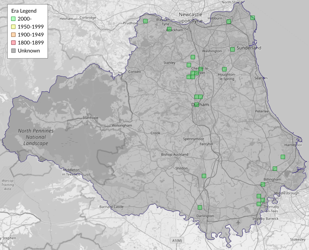 This map shows all records of Saxifrage Plume - Stenoptilia millieridactyla in the Durham (VC66) database per monad (1km grid square). The map can be explored further by zooming and panning, can be reset using the button on the left, and can be filtered by selecting the era. Click on a monad to view a full list of species recorded in it, or its containing hexad (10km grid square).
