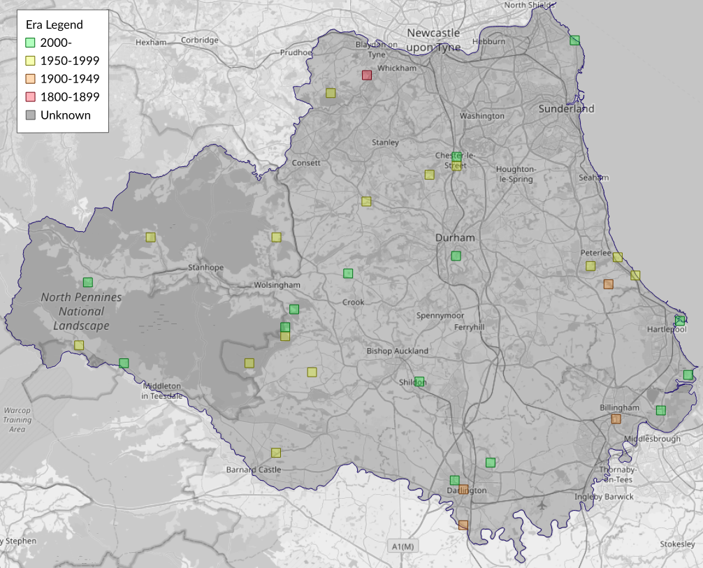 This map shows all records of - Aethes cnicana in the Durham (VC66) database per monad (1km grid square). The map can be explored further by zooming and panning, can be reset using the button on the left, and can be filtered by selecting the era. Click on a monad to view a full list of species recorded in it, or its containing hexad (10km grid square).