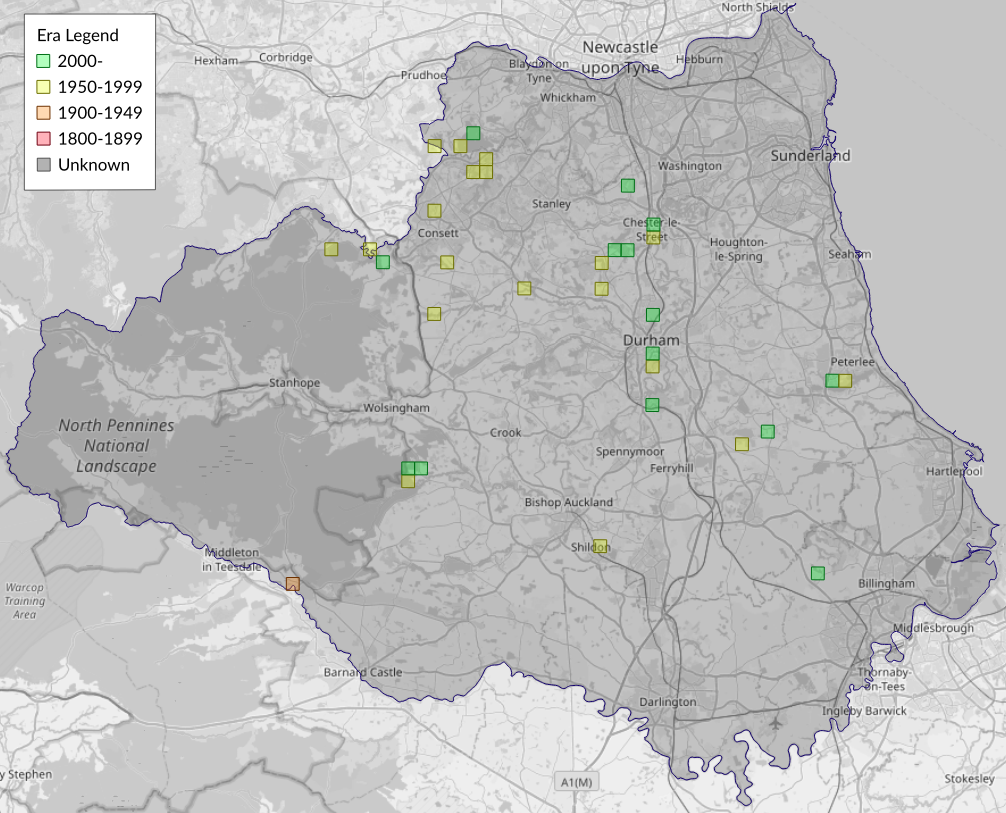 This map shows all records of - Capua vulgana in the Durham (VC66) database per monad (1km grid square). The map can be explored further by zooming and panning, can be reset using the button on the left, and can be filtered by selecting the era. Click on a monad to view a full list of species recorded in it, or its containing hexad (10km grid square).