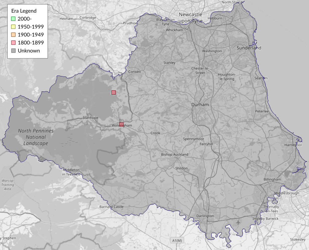 This map shows all records of - Coleophora genistae in the Durham (VC66) database per monad (1km grid square). The map can be explored further by zooming and panning, can be reset using the button on the left, and can be filtered by selecting the era. Click on a monad to view a full list of species recorded in it, or its containing hexad (10km grid square).