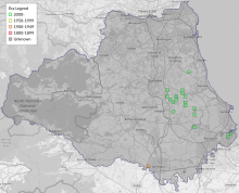 This map shows all records of - Coleophora striatipennella in the Durham (VC66) database per monad (1km grid square). The map can be explored further by zooming and panning, can be reset using the button on the left, and can be filtered by selecting the era. Click on a monad to view a full list of species recorded in it, or its containing hexad (10km grid square).