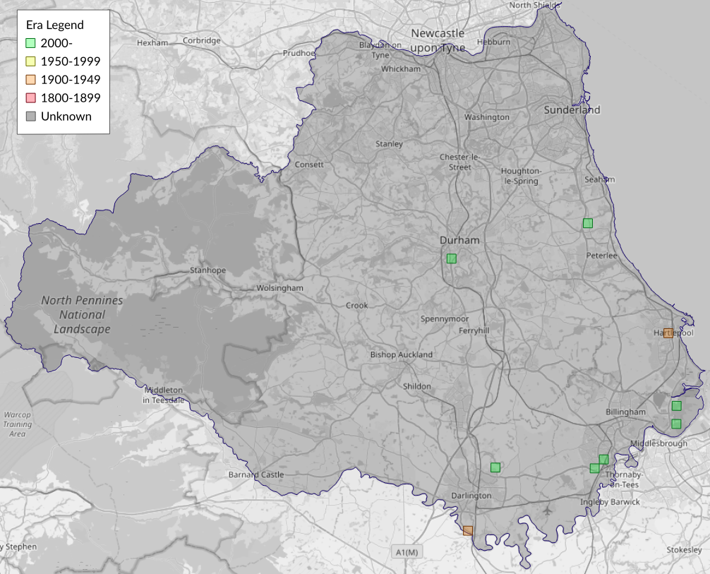 This map shows all records of - Agriphila selasella in the Durham (VC66) database per monad (1km grid square). The map can be explored further by zooming and panning, can be reset using the button on the left, and can be filtered by selecting the era. Click on a monad to view a full list of species recorded in it, or its containing hexad (10km grid square).