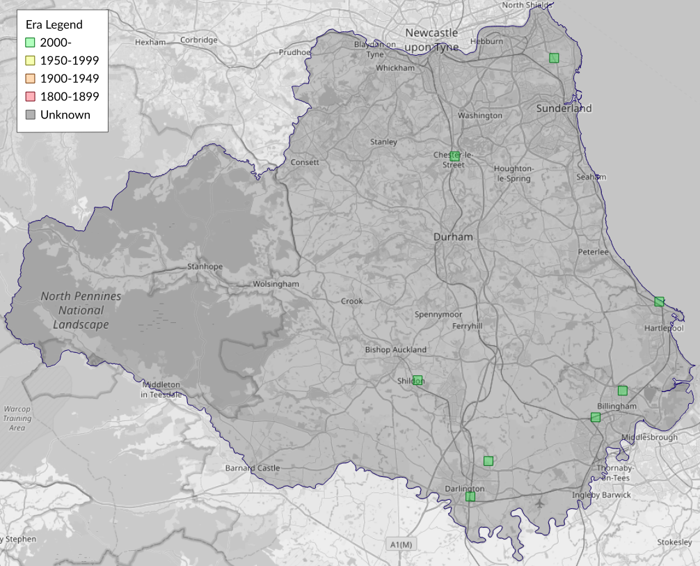 This map shows all records of - Palpita vitrealis in the Durham (VC66) database per monad (1km grid square). The map can be explored further by zooming and panning, can be reset using the button on the left, and can be filtered by selecting the era. Click on a monad to view a full list of species recorded in it, or its containing hexad (10km grid square).
