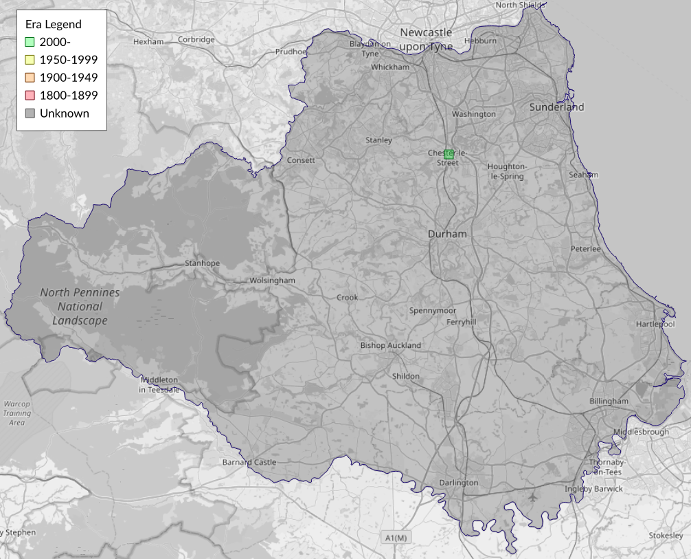 This map shows all records of - Spoladea recurvalis in the Durham (VC66) database per monad (1km grid square). The map can be explored further by zooming and panning, can be reset using the button on the left, and can be filtered by selecting the era. Click on a monad to view a full list of species recorded in it, or its containing hexad (10km grid square).
