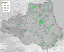 This map shows all records of Pale Tussock - Calliteara pudibunda in the Durham (VC66) database per monad (1km grid square). The map can be explored further by zooming and panning, can be reset using the button on the left, and can be filtered by selecting the era. Click on a monad to view a full list of species recorded in it, or its containing hexad (10km grid square).