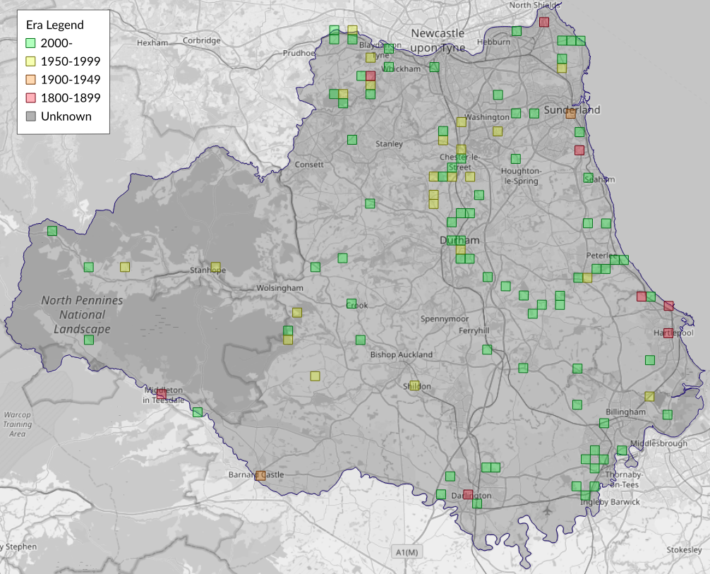 This map shows all records of Herald - Scoliopteryx libatrix in the Durham (VC66) database per monad (1km grid square). The map can be explored further by zooming and panning, can be reset using the button on the left, and can be filtered by selecting the era. Click on a monad to view a full list of species recorded in it, or its containing hexad (10km grid square).