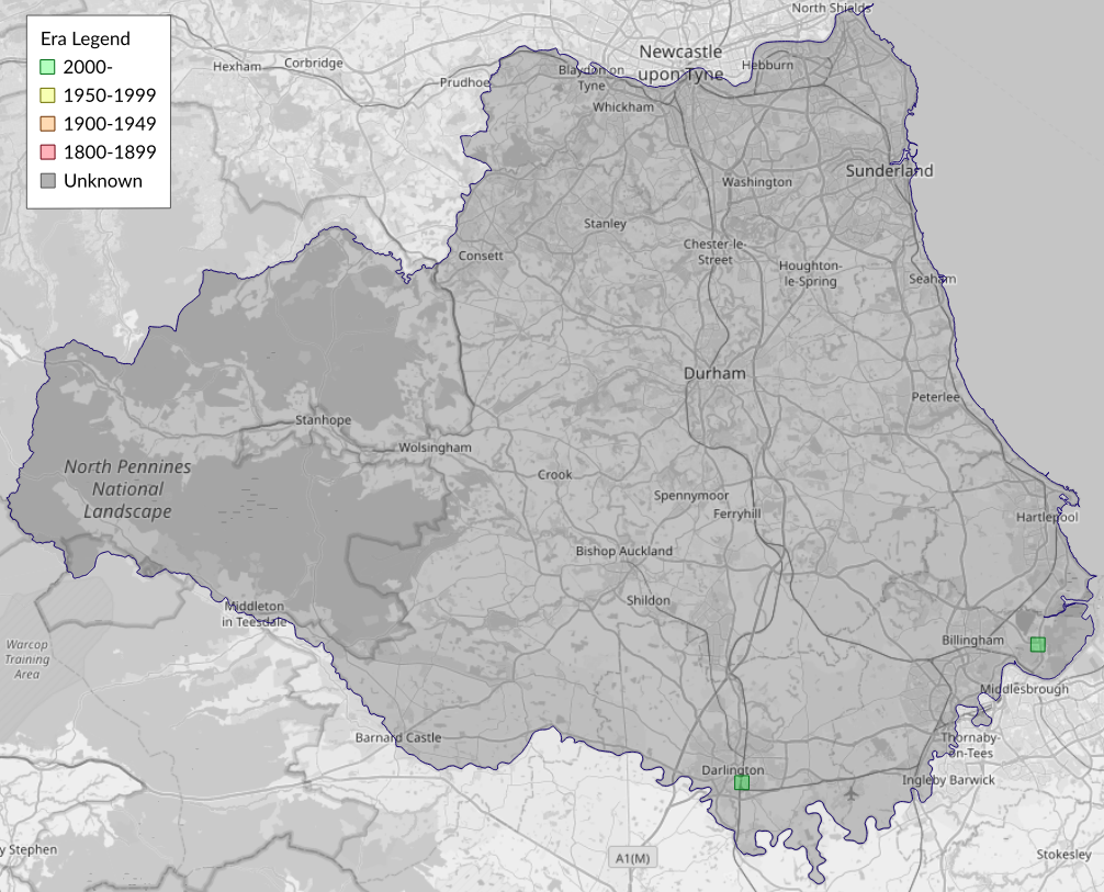 This map shows all records of - Anarsia innoxiella in the Durham (VC66) database per monad (1km grid square). The map can be explored further by zooming and panning, can be reset using the button on the left, and can be filtered by selecting the era. Click on a monad to view a full list of species recorded in it, or its containing hexad (10km grid square).