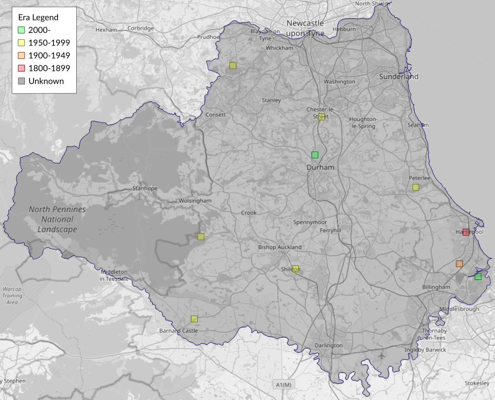 This map shows all records of - Bryotropha senectella in the Durham (VC66) database per monad (1km grid square). The map can be explored further by zooming and panning, can be reset using the button on the left, and can be filtered by selecting the era. Click on a monad to view a full list of species recorded in it, or its containing hexad (10km grid square).