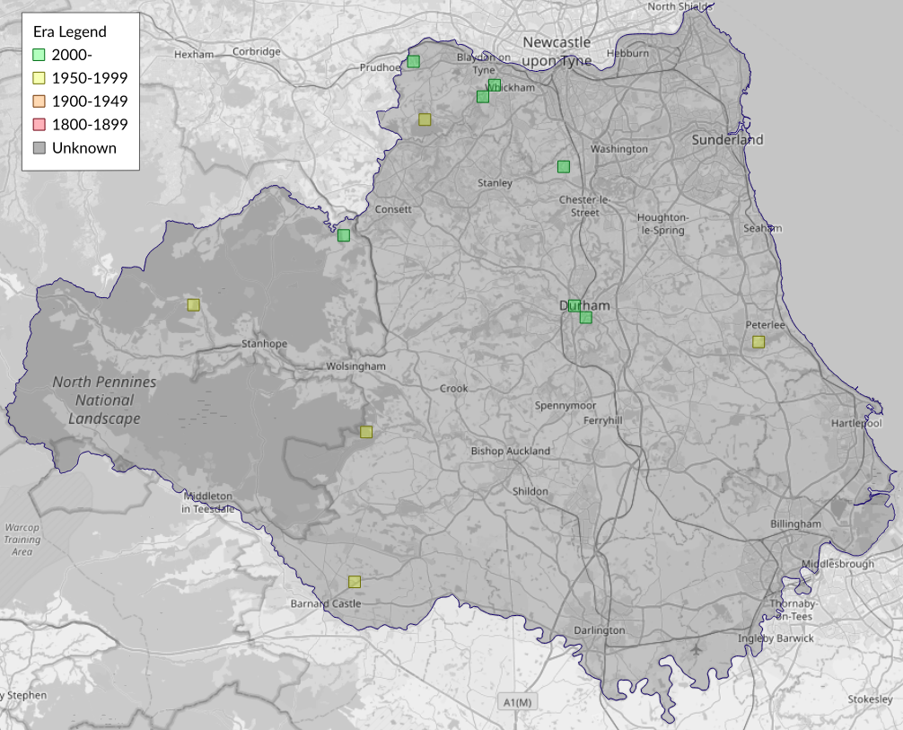 This map shows all records of - Carpatolechia decorella in the Durham (VC66) database per monad (1km grid square). The map can be explored further by zooming and panning, can be reset using the button on the left, and can be filtered by selecting the era. Click on a monad to view a full list of species recorded in it, or its containing hexad (10km grid square).