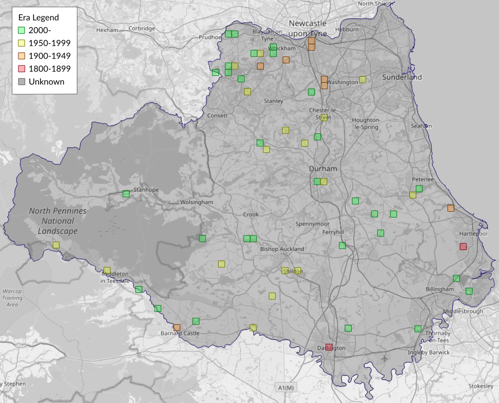 This map shows all records of Scarce Umber - Agriopis aurantiaria in the Durham (VC66) database per monad (1km grid square). The map can be explored further by zooming and panning, can be reset using the button on the left, and can be filtered by selecting the era. Click on a monad to view a full list of species recorded in it, or its containing hexad (10km grid square).
