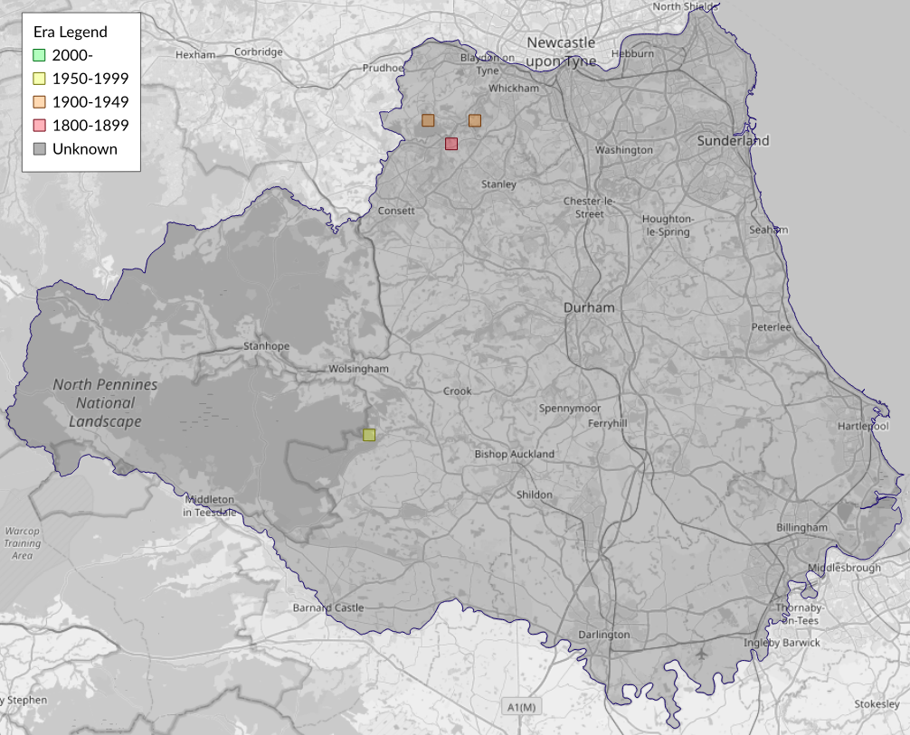 This map shows all records of Small Brindled Beauty - Apocheima hispidaria in the Durham (VC66) database per monad (1km grid square). The map can be explored further by zooming and panning, can be reset using the button on the left, and can be filtered by selecting the era. Click on a monad to view a full list of species recorded in it, or its containing hexad (10km grid square).