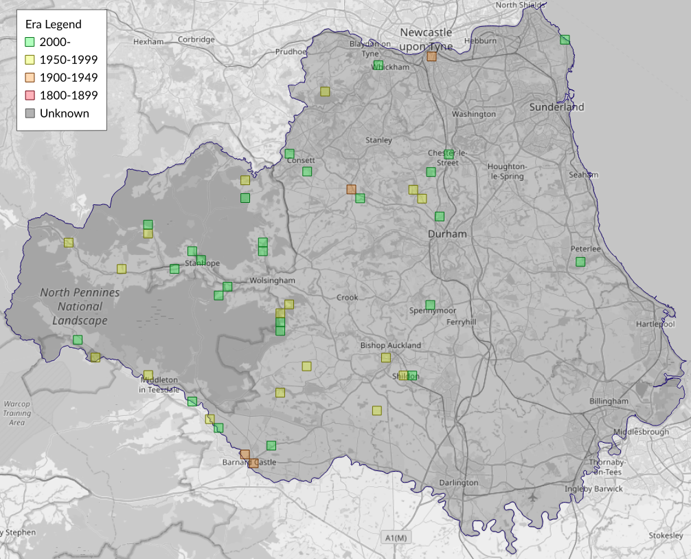 This map shows all records of Autumn Green Carpet - Chloroclysta miata in the Durham (VC66) database per monad (1km grid square). The map can be explored further by zooming and panning, can be reset using the button on the left, and can be filtered by selecting the era. Click on a monad to view a full list of species recorded in it, or its containing hexad (10km grid square).
