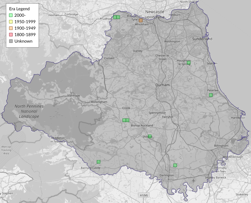 This map shows all records of November Moth - Epirrita dilutata in the Durham (VC66) database per monad (1km grid square). The map can be explored further by zooming and panning, can be reset using the button on the left, and can be filtered by selecting the era. Click on a monad to view a full list of species recorded in it, or its containing hexad (10km grid square).