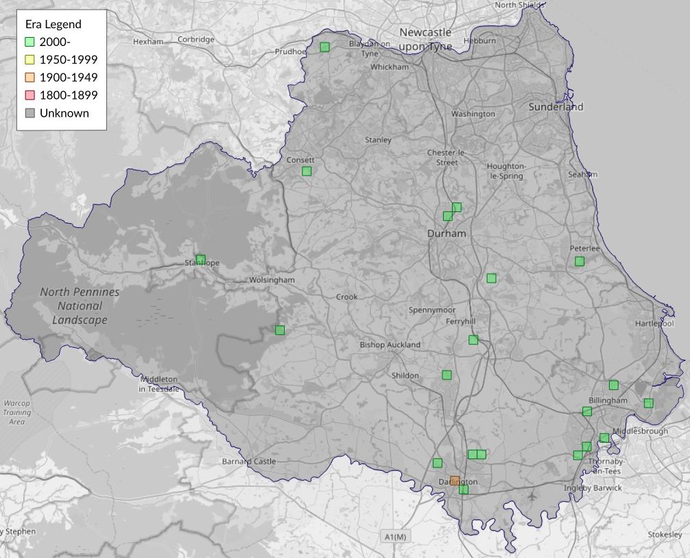 This map shows all records of Maple Pug - Eupithecia inturbata in the Durham (VC66) database per monad (1km grid square). The map can be explored further by zooming and panning, can be reset using the button on the left, and can be filtered by selecting the era. Click on a monad to view a full list of species recorded in it, or its containing hexad (10km grid square).