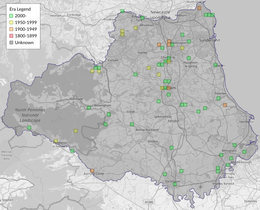 This map shows all records of May Highflyer - Hydriomena impluviata in the Durham (VC66) database per monad (1km grid square). The map can be explored further by zooming and panning, can be reset using the button on the left, and can be filtered by selecting the era. Click on a monad to view a full list of species recorded in it, or its containing hexad (10km grid square).