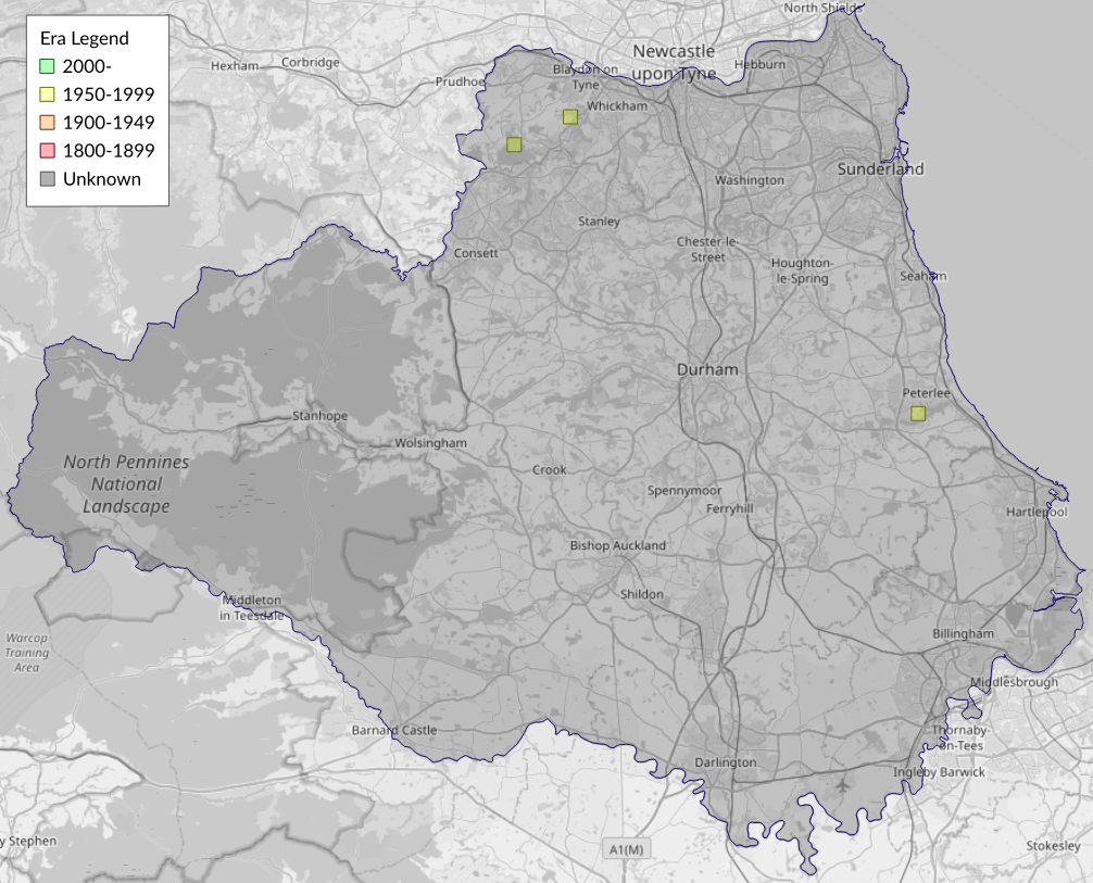 This map shows all records of Pale Oak Beauty - Hypomecis punctinalis in the Durham (VC66) database per monad (1km grid square). The map can be explored further by zooming and panning, can be reset using the button on the left, and can be filtered by selecting the era. Click on a monad to view a full list of species recorded in it, or its containing hexad (10km grid square).