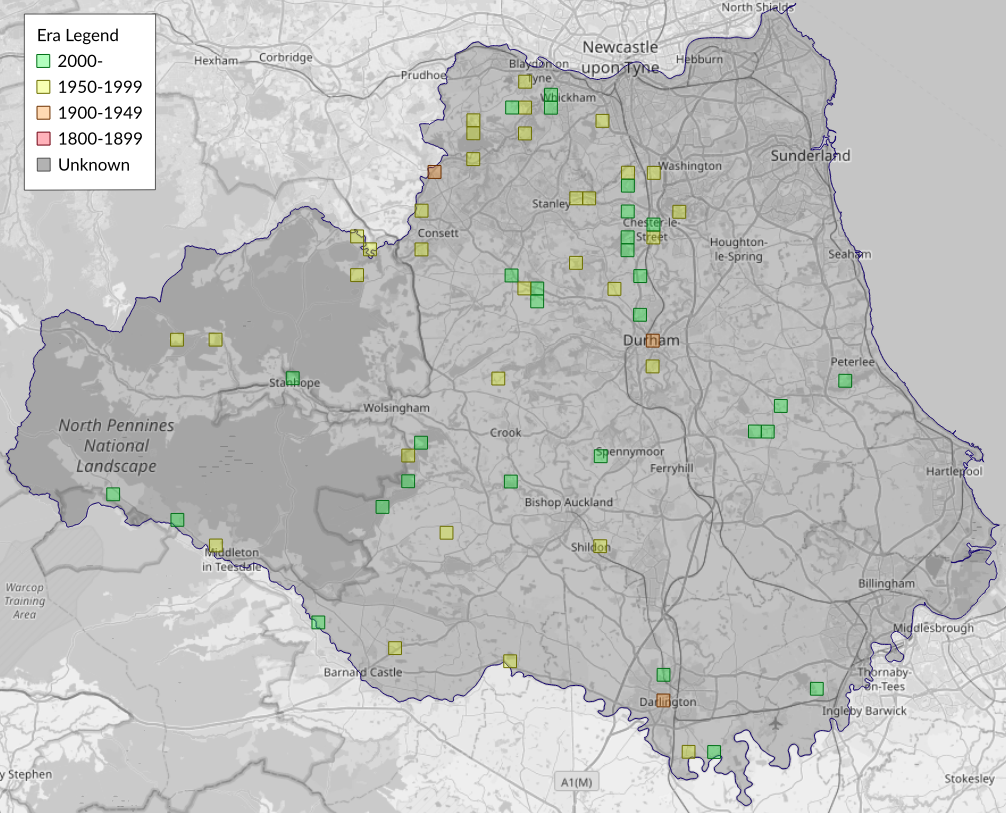 This map shows all records of Northern Winter Moth - Operophtera fagata in the Durham (VC66) database per monad (1km grid square). The map can be explored further by zooming and panning, can be reset using the button on the left, and can be filtered by selecting the era. Click on a monad to view a full list of species recorded in it, or its containing hexad (10km grid square).