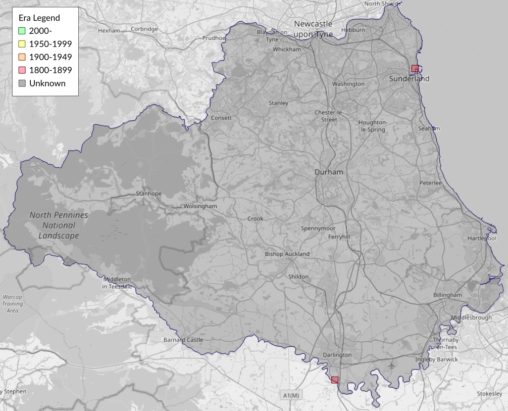 This map shows all records of Oblique Carpet - Orthonama vittata in the Durham (VC66) database per monad (1km grid square). The map can be explored further by zooming and panning, can be reset using the button on the left, and can be filtered by selecting the era. Click on a monad to view a full list of species recorded in it, or its containing hexad (10km grid square).