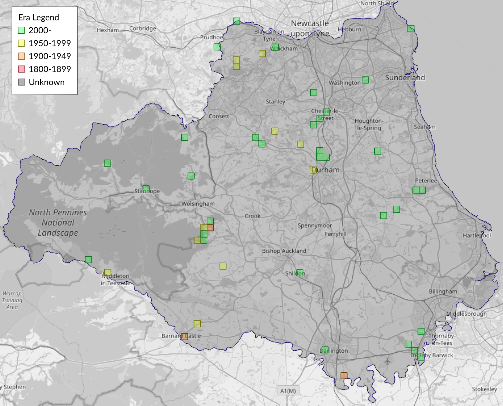 This map shows all records of Pine Carpet - Pennithera firmata in the Durham (VC66) database per monad (1km grid square). The map can be explored further by zooming and panning, can be reset using the button on the left, and can be filtered by selecting the era. Click on a monad to view a full list of species recorded in it, or its containing hexad (10km grid square).