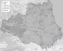 This map shows all records of Pretty Pinion - Perizoma blandiata in the Durham (VC66) database per monad (1km grid square). The map can be explored further by zooming and panning, can be reset using the button on the left, and can be filtered by selecting the era. Click on a monad to view a full list of species recorded in it, or its containing hexad (10km grid square).
