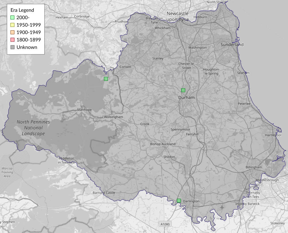 This map shows all records of Large Ear - Amphipoea lucens in the Durham (VC66) database per monad (1km grid square). The map can be explored further by zooming and panning, can be reset using the button on the left, and can be filtered by selecting the era. Click on a monad to view a full list of species recorded in it, or its containing hexad (10km grid square).