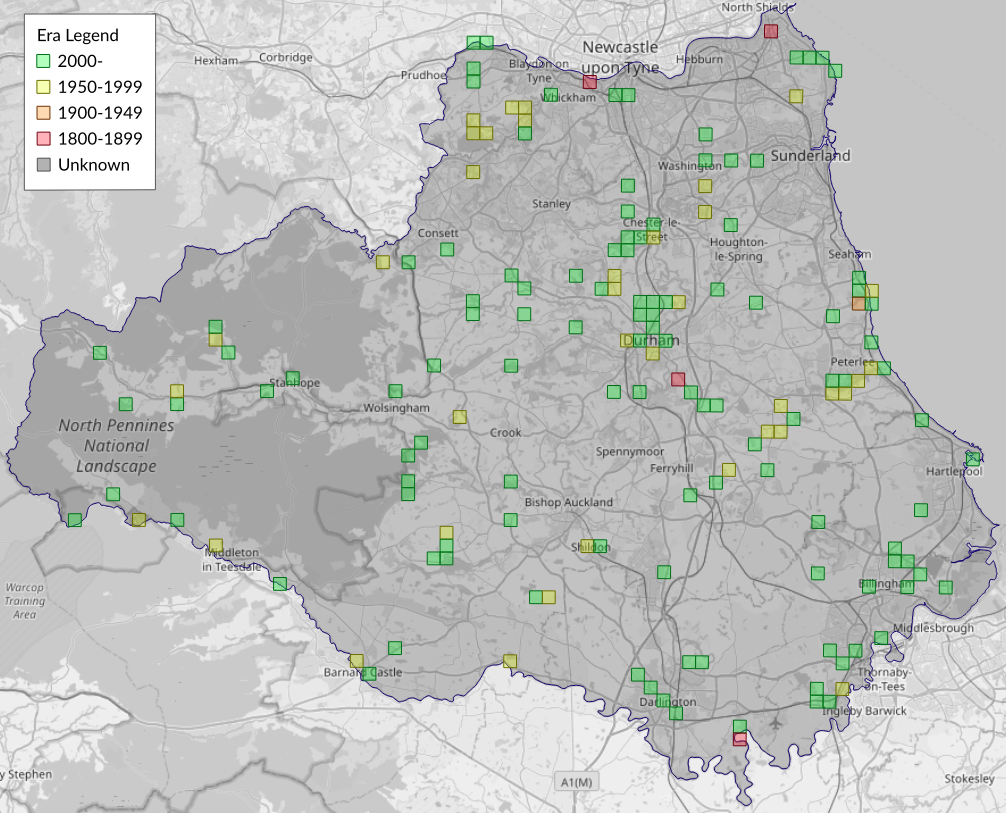 This map shows all records of Plain Golden Y - Autographa jota in the Durham (VC66) database per monad (1km grid square). The map can be explored further by zooming and panning, can be reset using the button on the left, and can be filtered by selecting the era. Click on a monad to view a full list of species recorded in it, or its containing hexad (10km grid square).