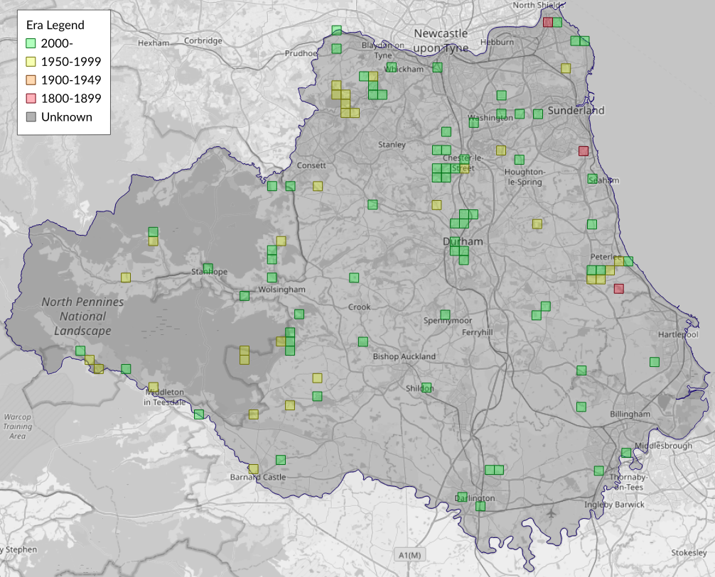 A fairly generally distributed species of mixed and deciduous woodland and parkland, the distribution of which does not appear to have changed to any great extent since the days of Robson [...] if anything its numbers may have increased. [...] In Durham it is very widely distributed from Langdon Beck where I. Findlay takes it regularly, throughout Teesdale and Weardale (Hamsterley Forest trap) to the central lowlands where it is in every list. It is also in most of the woods in the Derwent valley, and recorded from Castle Eden Dene near the coastline, by D. Sheppard.