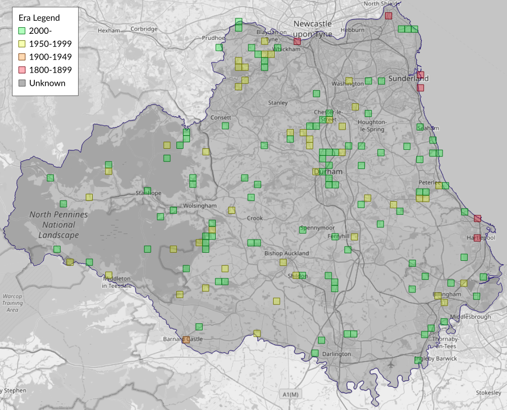 This map shows all records of Ingrailed Clay - Diarsia mendica in the Durham (VC66) database per monad (1km grid square). The map can be explored further by zooming and panning, can be reset using the button on the left, and can be filtered by selecting the era. Click on a monad to view a full list of species recorded in it, or its containing hexad (10km grid square).