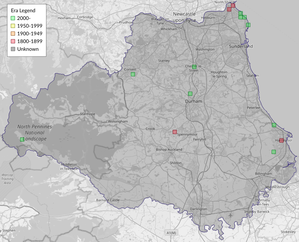 This map shows all records of Bordered Straw - Heliothis peltigera in the Durham (VC66) database per monad (1km grid square). The map can be explored further by zooming and panning, can be reset using the button on the left, and can be filtered by selecting the era. Click on a monad to view a full list of species recorded in it, or its containing hexad (10km grid square).