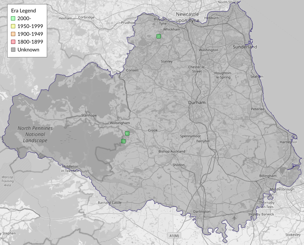 This map shows all records of Saxon - Hyppa rectilinea in the Durham (VC66) database per monad (1km grid square). The map can be explored further by zooming and panning, can be reset using the button on the left, and can be filtered by selecting the era. Click on a monad to view a full list of species recorded in it, or its containing hexad (10km grid square).