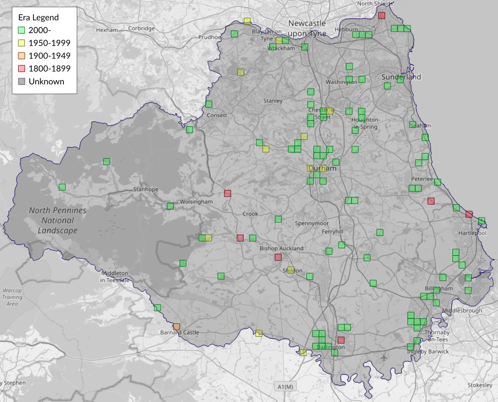Robson regarded this species as 'well distributed [...] but not generally abundant' [...] In Durham the species has been found more frequently in outhouses, garages and garden sheds than anywhere else. TCD has met with it only twice in the front porch of his house at Chester-le-Street in August 1952, and again in August 1959 when a neighbour brought him one that she had found on her living room curtains. In 1984 M. Mann had two (on 10 and 26 August) in his potting shed. Apart from these, J. P. Robson met with it in Teesdale in 1927, J. W. H. Harrison reported it at Birtley and at Swalwell in 1952, R. Woods has taken it once in Sacriston in 1976, and J. W. Philipson took it at light at Ryton Willows in 1961.
