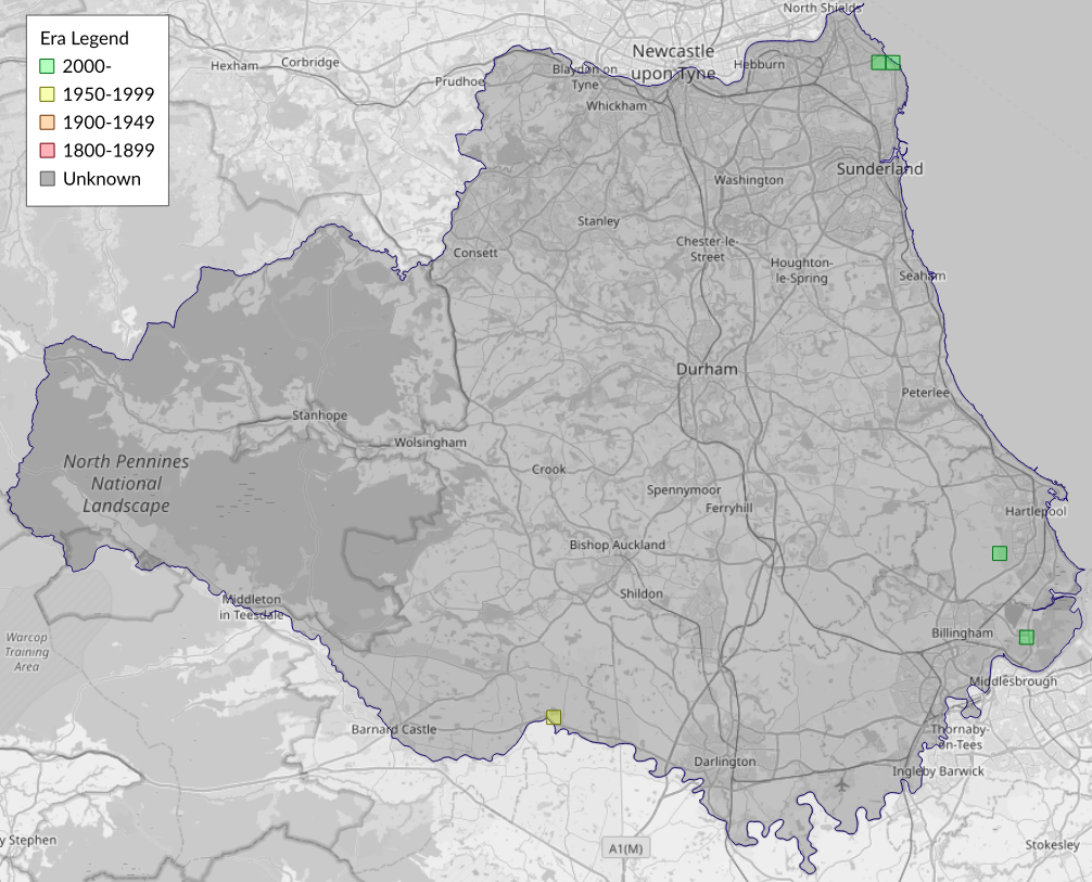 This map shows all records of Delicate - Mythimna vitellina in the Durham (VC66) database per monad (1km grid square). The map can be explored further by zooming and panning, can be reset using the button on the left, and can be filtered by selecting the era. Click on a monad to view a full list of species recorded in it, or its containing hexad (10km grid square).
