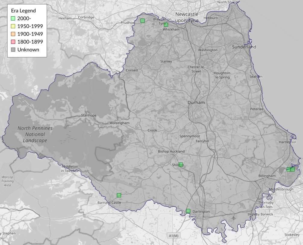 This map shows all records of Marbled Minor - Oligia strigilis in the Durham (VC66) database per monad (1km grid square). The map can be explored further by zooming and panning, can be reset using the button on the left, and can be filtered by selecting the era. Click on a monad to view a full list of species recorded in it, or its containing hexad (10km grid square).