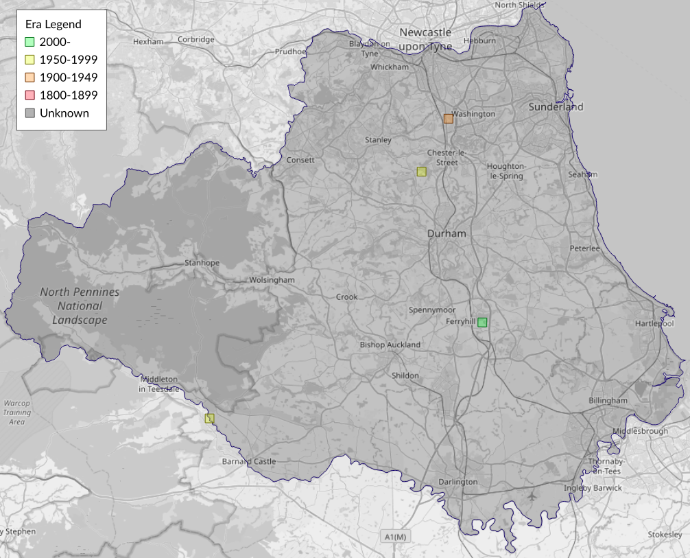 This map shows all records of Northern Drab - Orthosia opima in the Durham (VC66) database per monad (1km grid square). The map can be explored further by zooming and panning, can be reset using the button on the left, and can be filtered by selecting the era. Click on a monad to view a full list of species recorded in it, or its containing hexad (10km grid square).
