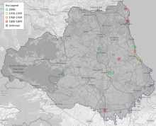 Robson gives an account of the early discovery and flight habits of this species, and quotes records [...] [at] Neasham Lane, near Darlington (J. Sang), Blackhall Rocks (J. Robson, Mr. Gardner), Roker (Mr. Corder), near Marsden (Mr. Eales) and the Hesleden/Castle Eden Dene area (vars.). It is still known well in its cliff-top haunts from Blackhall Rocks to Beacon Point in Durham, always on well-drained limestone grassland. The only presently-known inland colony in that county is in Cassop Vale, and again this is on a very dry limestone grassland bank facing south. [...]