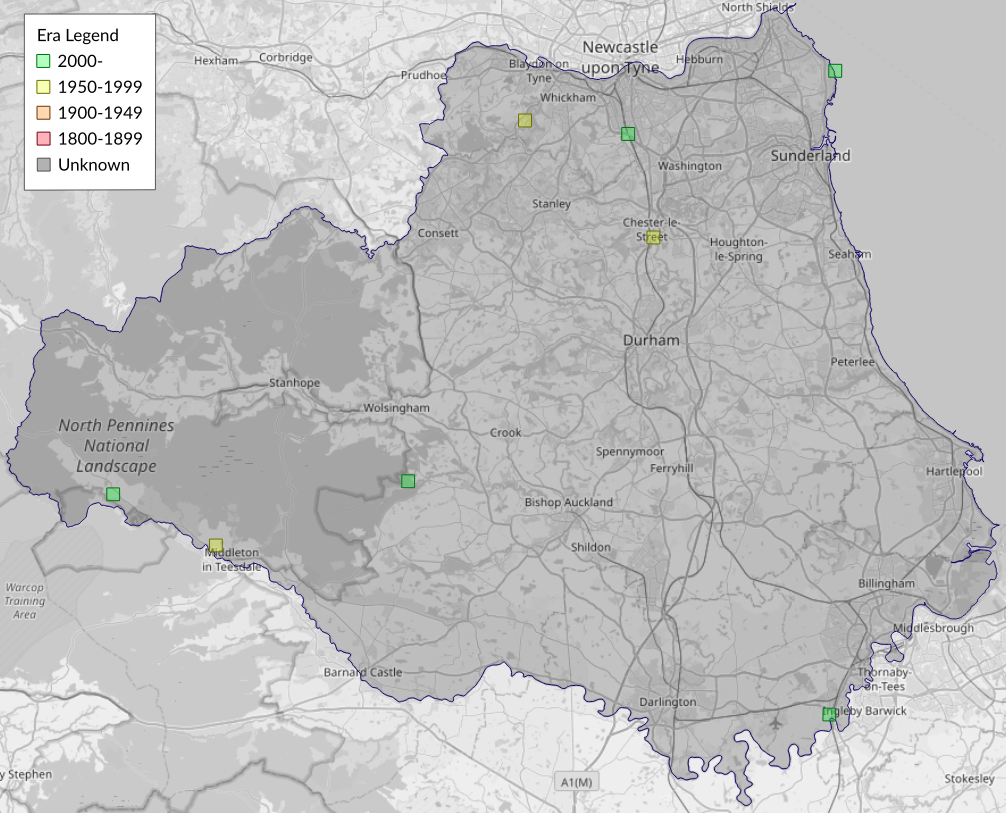 This map shows all records of Barred Sallow - Tiliacea aurago in the Durham (VC66) database per monad (1km grid square). The map can be explored further by zooming and panning, can be reset using the button on the left, and can be filtered by selecting the era. Click on a monad to view a full list of species recorded in it, or its containing hexad (10km grid square).